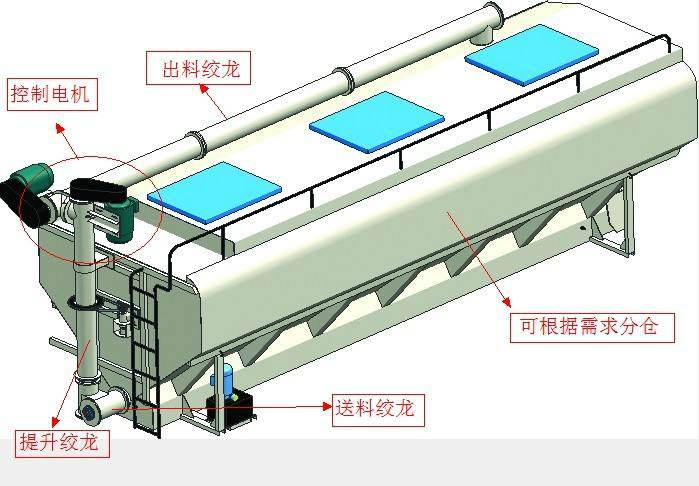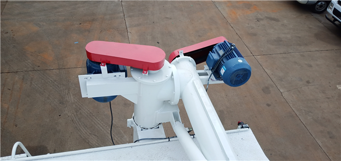 上裝罐體:罐體材質(zhì)采用4mm優(yōu)質(zhì)碳鋼板,整車3條絞龍,由3個(gè)5.5KW電機(jī)380V外接電源帶動(dòng)頂部絞龍用液壓控制舉升,可左右旋轉(zhuǎn)180°。罐體內(nèi)分為四個(gè)倉,可以獨(dú)立控制各分倉卸料順序和速度。(備注:此報(bào)價(jià)為標(biāo)配,國產(chǎn)電機(jī),德力西電柜)